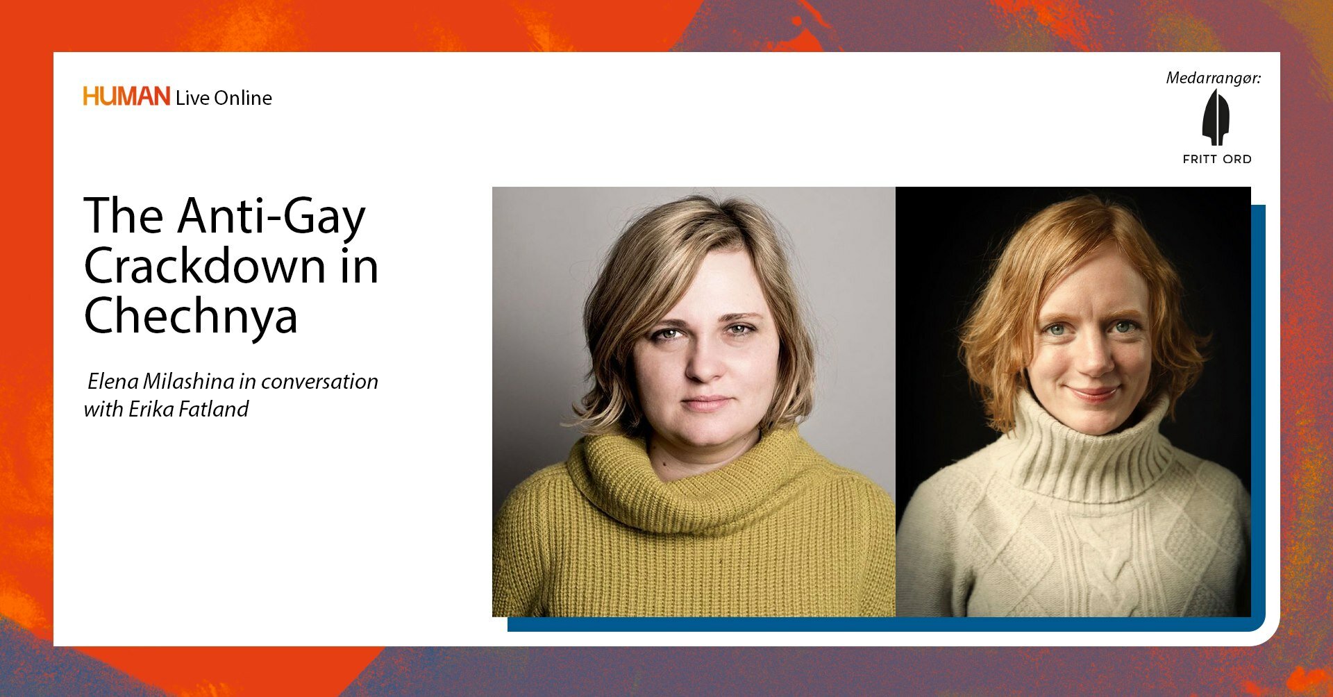 Conversation between Elena Milashina and Erika Fatland, hosted by Fritt Ord and Human International Documentary Film Festival.