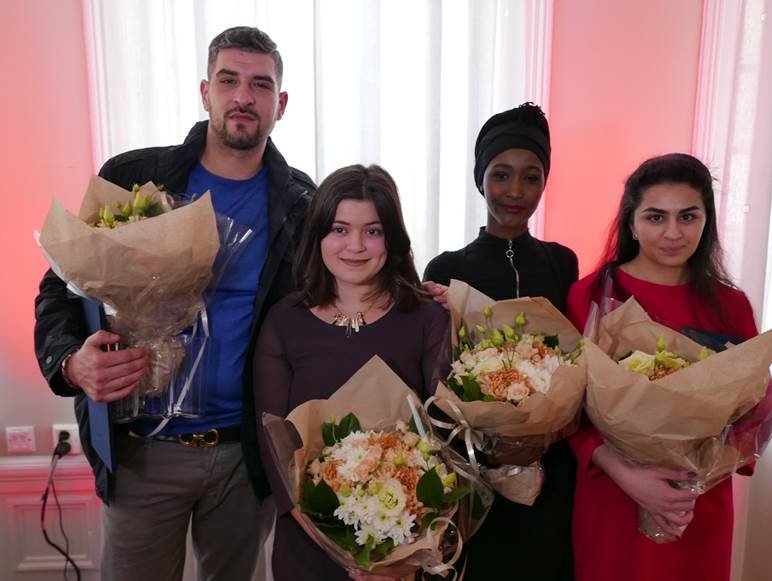 The ceremony was held in the Fritt Ord Foundation’s premises in Oslo; speeches were given by Grete Brochmann and Bård Vegar Solhjell on behalf of Fritt Ord, and by the four recipients of the Tribute: Leo Ajkic, Amina Bile, Nancy Herz and Sofia Srour. A musical interlude was provided by the rapper MYRA from Bergen.