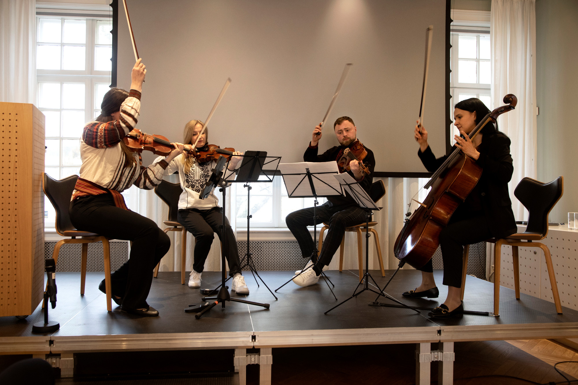 The Kyiv Soloists have been touring Europe with a Ukrainian repertoire to collect money for the victims of the war, soliciting support for Ukraine. From an event at Fritt Ord, 5 December 2022
