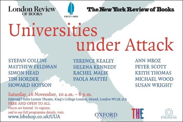 Although many of these trends have been at work since the mid-1980s, the thirty-years’ war of attrition, pitting universities against the business-government axis has over the past year turned into a Blitzkrieg as the government seizes the opportunity of a funding crisis to push through dramatic and irreversible changes before the universities can organise effective resistance. How, then, to respond? In a parallel universe in which university administrators still gave priority to academic priorities and concerns, one could imagine the Russell Group or Universities UK organising a major conference in London to subject these radical changes to sustained, collective scrutiny. One could also imagine Britain’s premier academies of arts and sciences helping to forge all the other learned society into a body capable of defending academic values with a single voice.